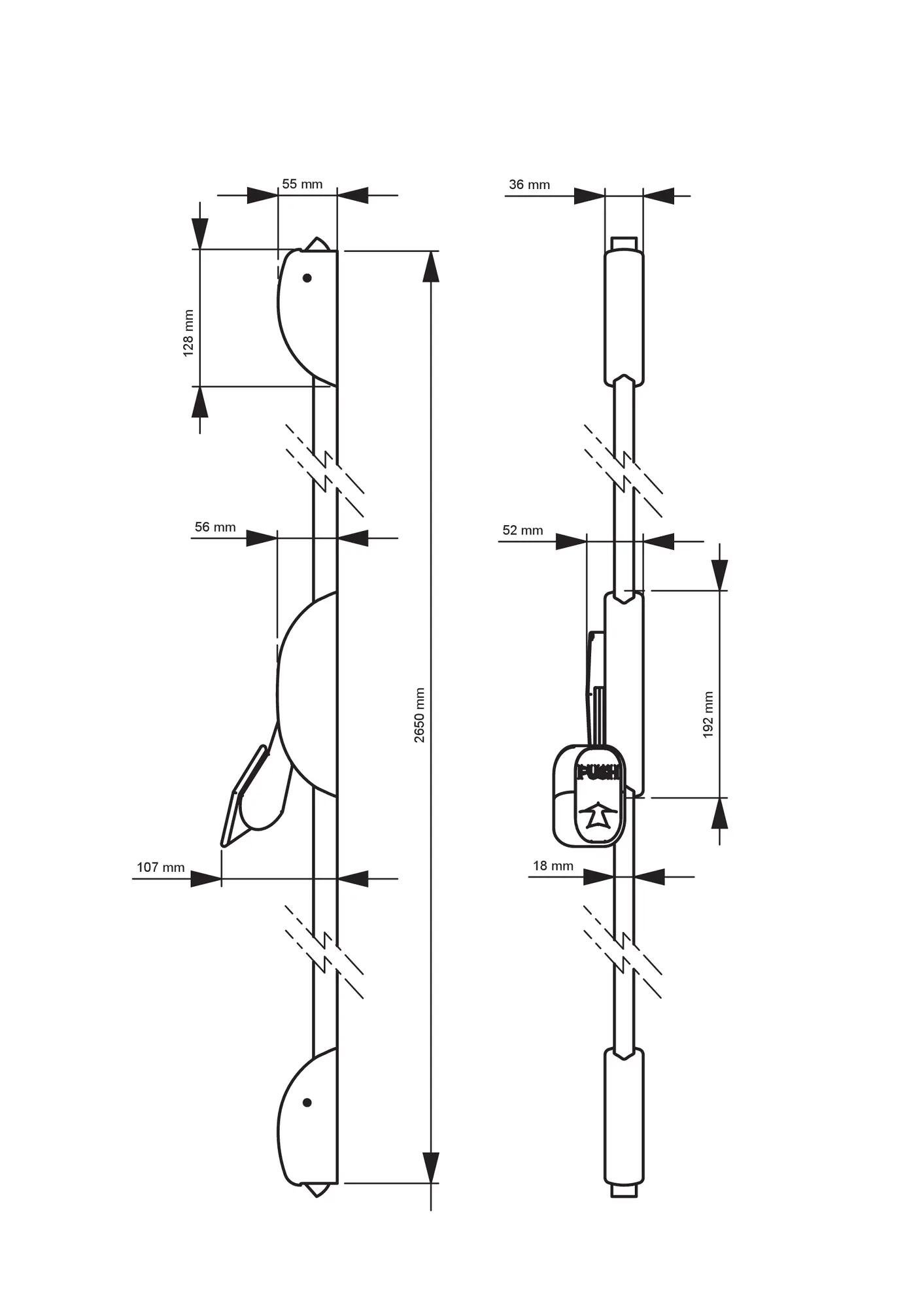Equipped with a single push handle, this emergency closure is easy to use thanks to the good grip of its operating element. Moreover, thanks to its symmetrical mechanism, this cremone bolt is reversible without disassembly for total assembly flexibility.